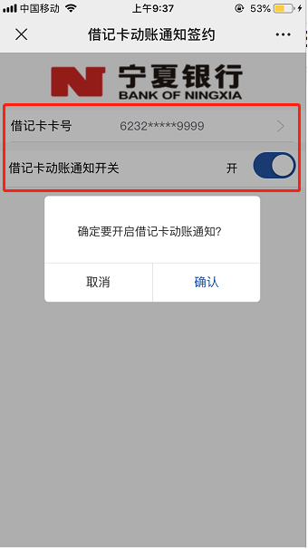 寧夏銀行微信借記卡動賬通知便捷上線!